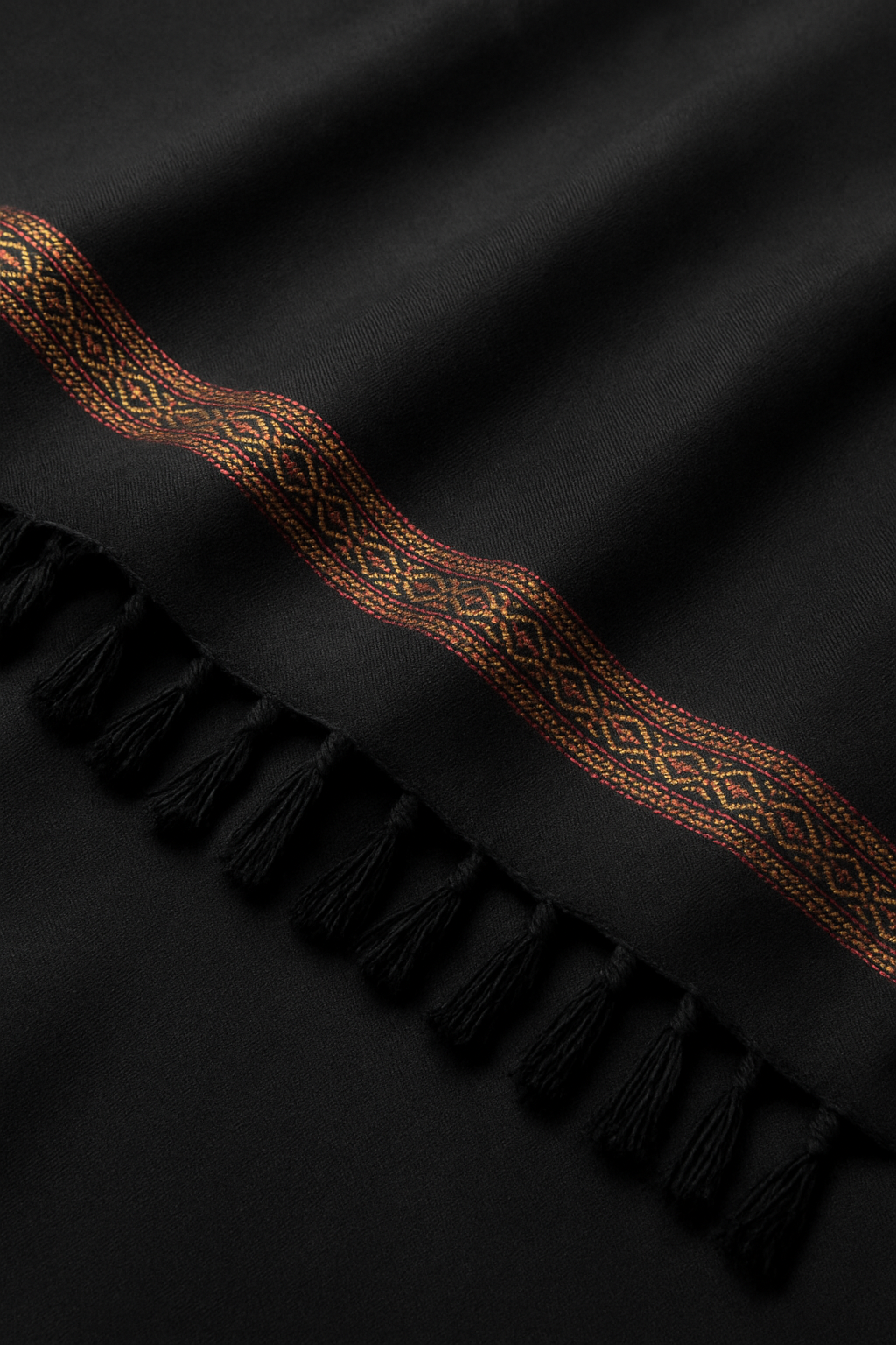 Wrap yourself in timeless elegance with this Luxury Black Shawl, crafted from soft and durable fabric that provides warmth and sophistication.