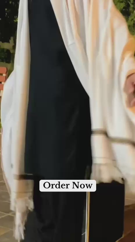 Experience timeless elegance with our Premium White Shawl, crafted from soft, breathable fabric designed for ultimate comfort and luxury. The shawl features a rich golden and brown embroidered border, adding a touch of sophistication to your traditional attire.